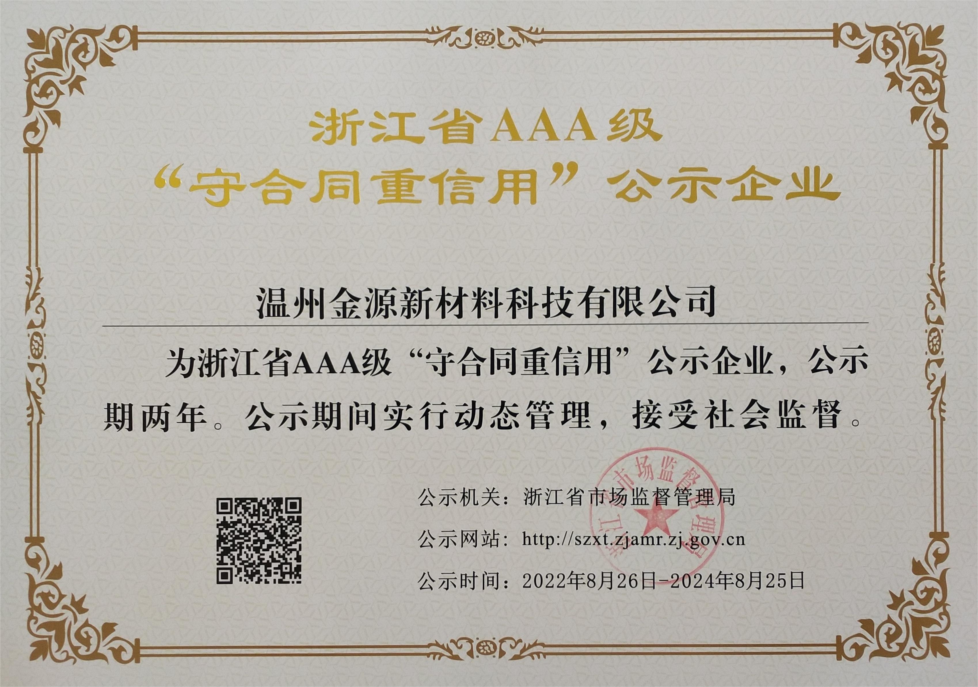 浙江省AAA守合同重信用單位